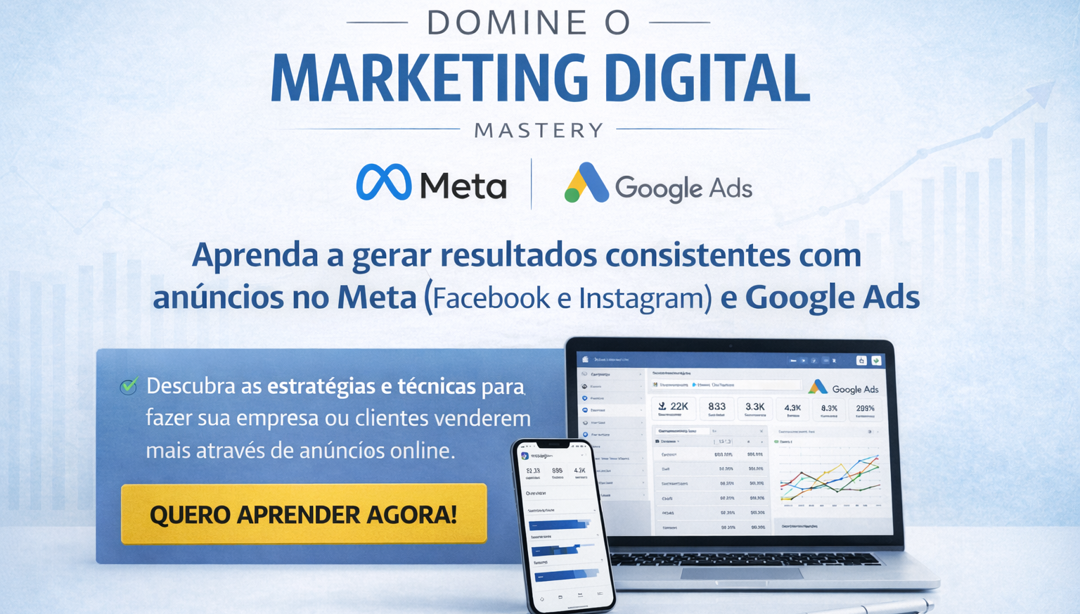 Torne-se um mestre nas duas maiores fontes de tráfego do planeta: Meta Ads (Face/Insta) e Google Ads.